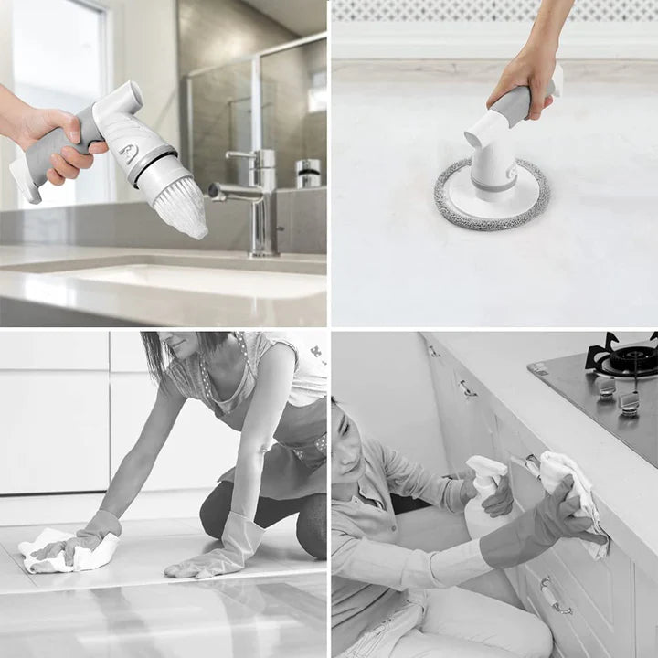 تأتي الفرشاة مع 4 أطراف قابلة للتبديل، كل منها مصمم لنوع سطح محدد: ناعمة للأسطح الحساسة، متوسطة للبقع الشائعة، صلبة للأوساخ العنيدة وفرشاة خاصة للزوايا والشقوق.