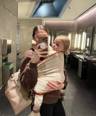 S dvěma malými dětmi jsem zahlcená. Tento nosič mi umožňuje mít malé dítě blízko sebe, zatímco zvládám každodenní úkoly. Je to skutečné ulehčení.
