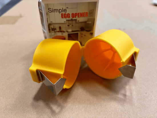 Ne, náraz je jemný a dobře rozložený, což umožňuje rozbít skořápku, aniž by se vejce rozmačklo.