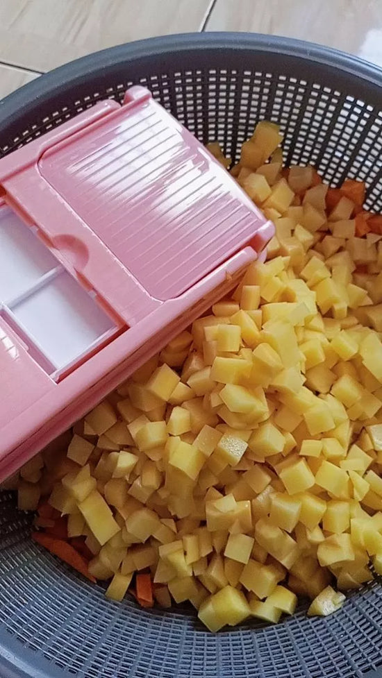 Ano, nástroj je navržen tak, aby krájel i tvrdou zeleninu. Doporučuje se je před vložením hrubě rozkrojit na polovinu.