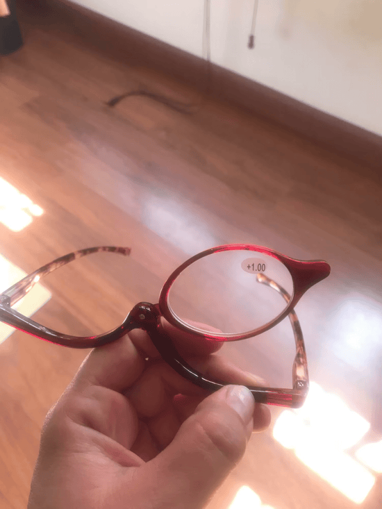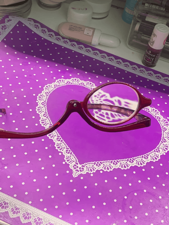 Linse kan drejes fra den ene side til den anden for at holde et øje frit under påføring af makeup.