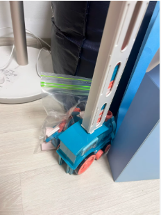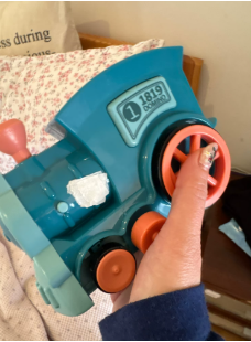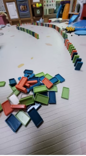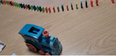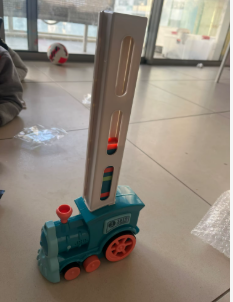 Füllen Sie einfach den Ladegerät mit den Dominosteinen, setzen Sie ihn in das Fahrzeug ein und schalten Sie es ein: es platziert die Dominosteine automatisch in einer Reihe.