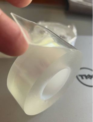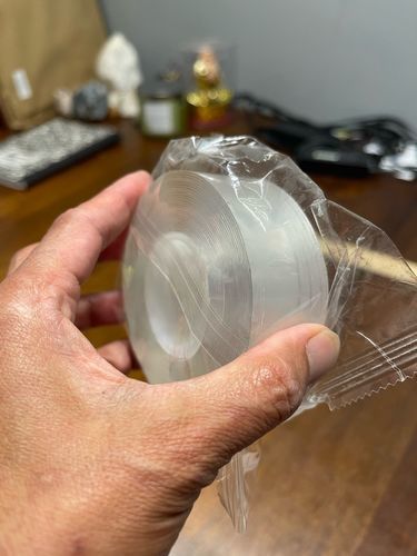 Per rimuovere il nastro senza lasciare tracce, staccalo lentamente tirando progressivamente. Se rimangono residui adesivi, usa un panno umido o un po' d'acqua saponata per rimuoverli facilmente.