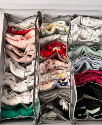 Deze dozen zijn ideaal om uw ondergoed, sokken, leggings, t-shirts, pyjama's of dunne broeken te organiseren. Elke categorie heeft zijn eigen toegewezen ruimte volgens uw wensen.