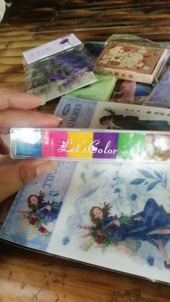 • 1 stempel z tuszem w 20 żywych kolorach.