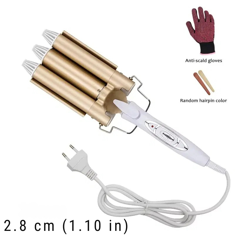 Thanks to its triple barrel, create voluminous and natural waves in record time, without damaging your hair.