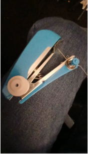 Am folosit-o pentru a repara un tiv de pantaloni, foarte simplu chiar dacă nu mă pricep deloc.